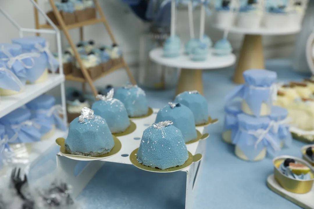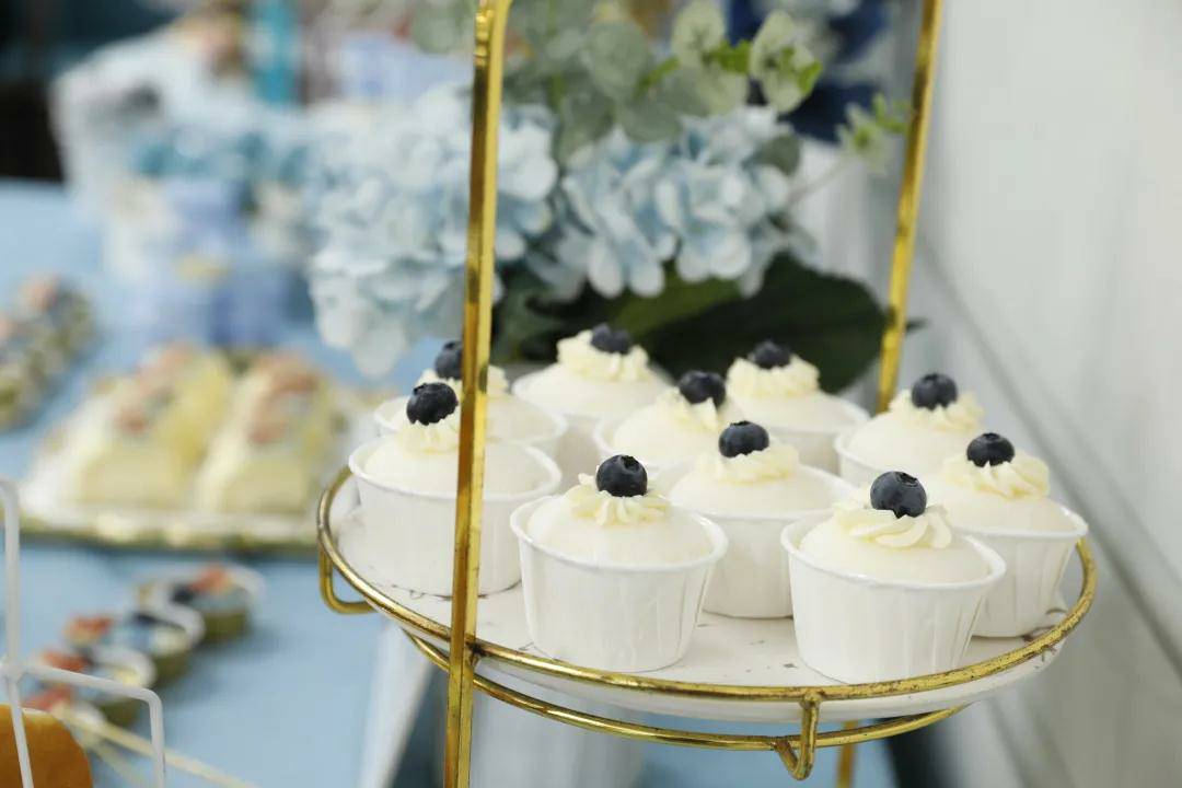 美味的蛋糕、琳琅满目的水果和饮品被陈列在桌面上,令人垂涎欲滴。